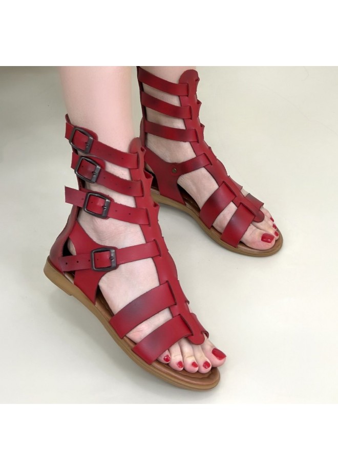 Nola Kırmızı Deri Kemerli Sandalet