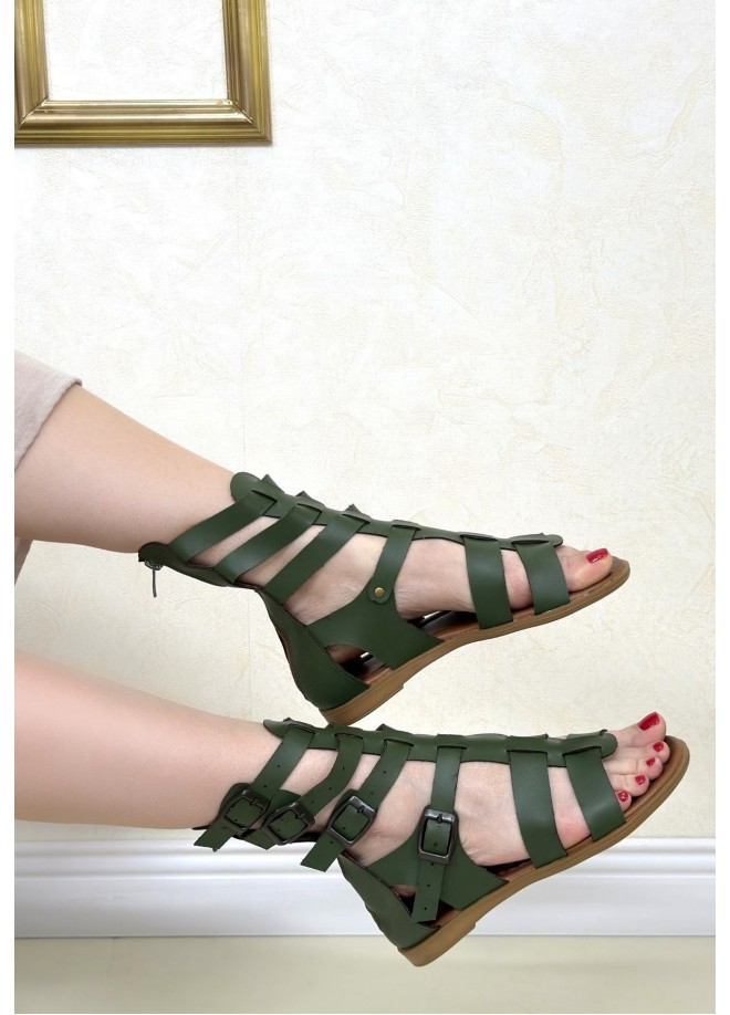 Nola Yeşil Deri Kemerli Sandalet