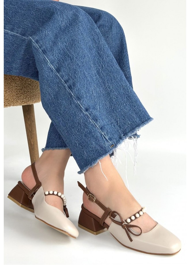 Ceyda Bej Cilt Taba Detaylı Topuklu Ayakkabı