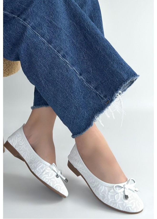 Jnues Beyaz Deri Babet Ayakkabı
