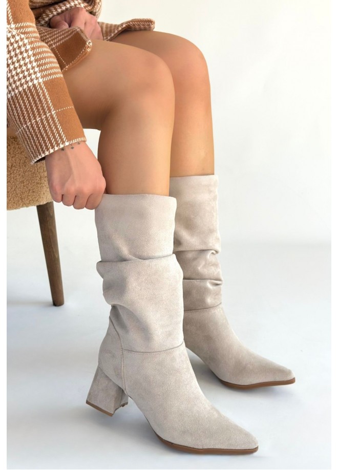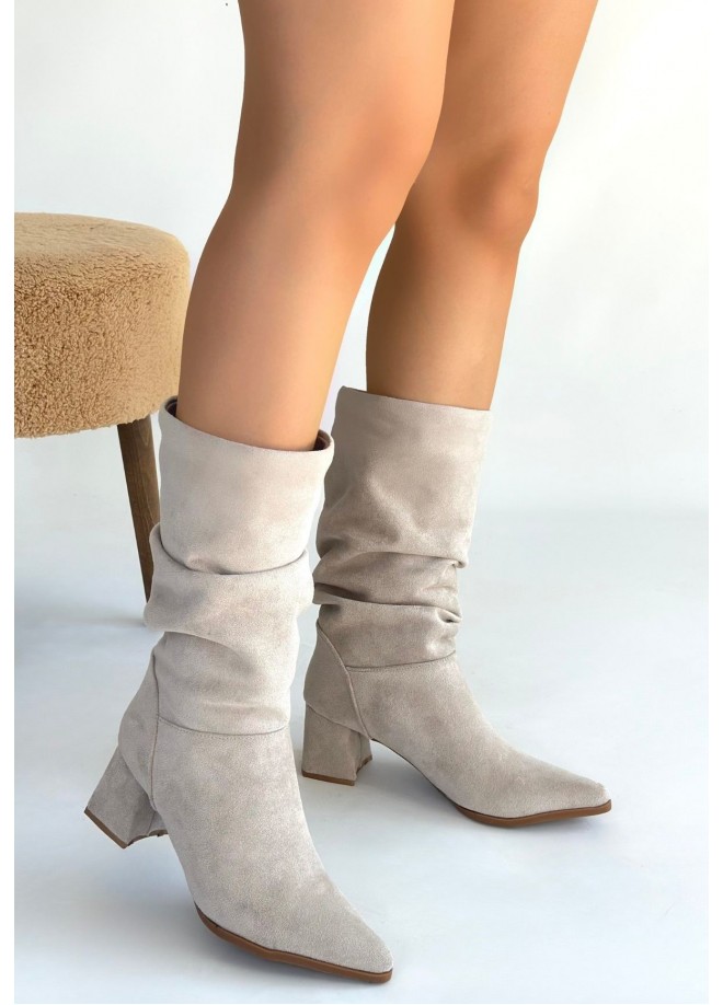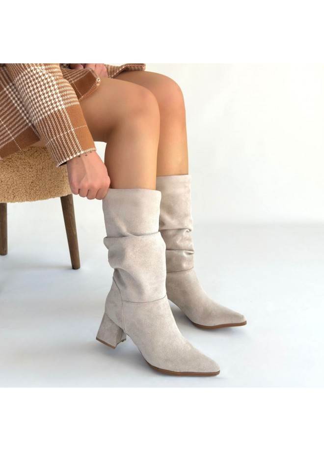 Detay: Topuklu Diz Altı Körüklü Çizme