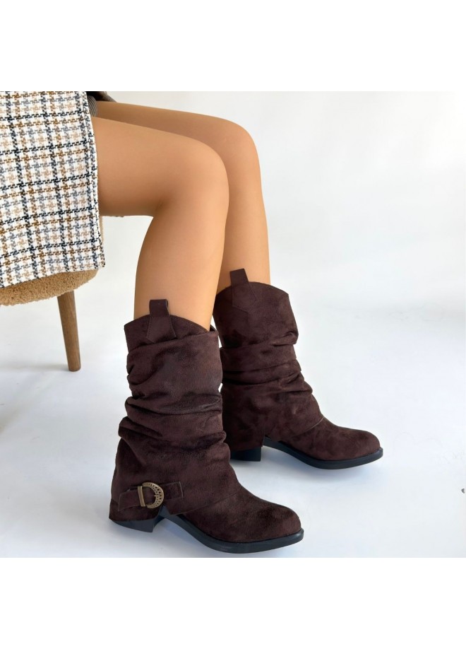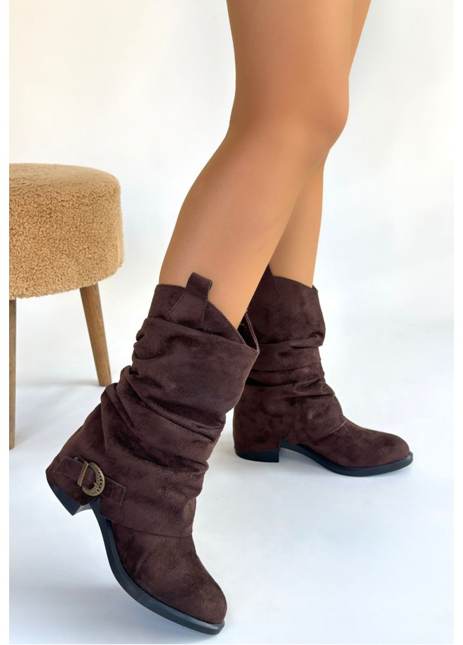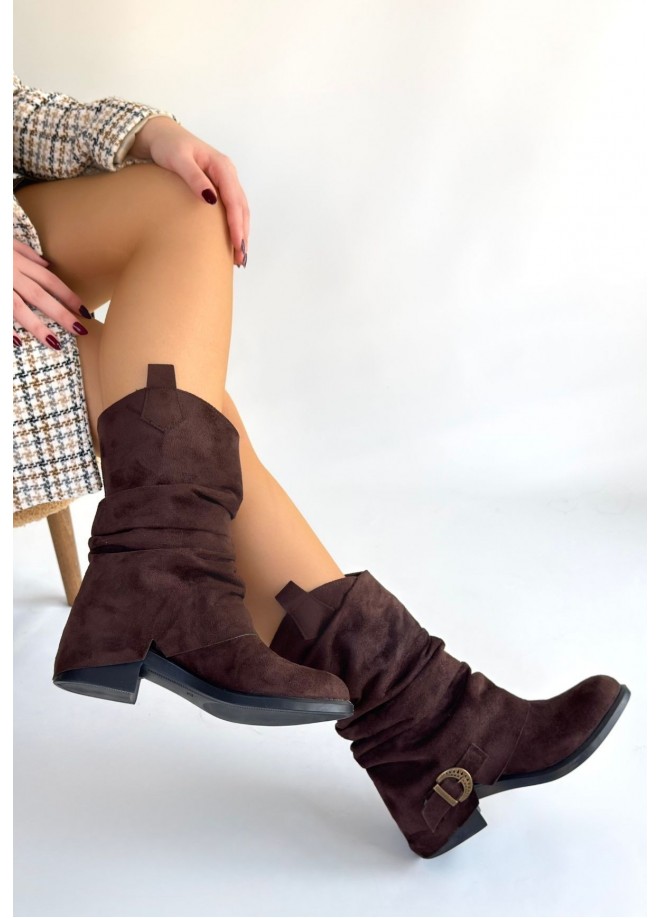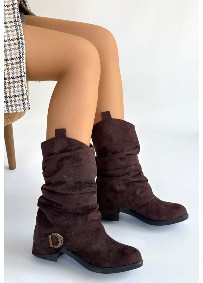 Canty Kahverengi Süet Körüklü Topuklu Çizme