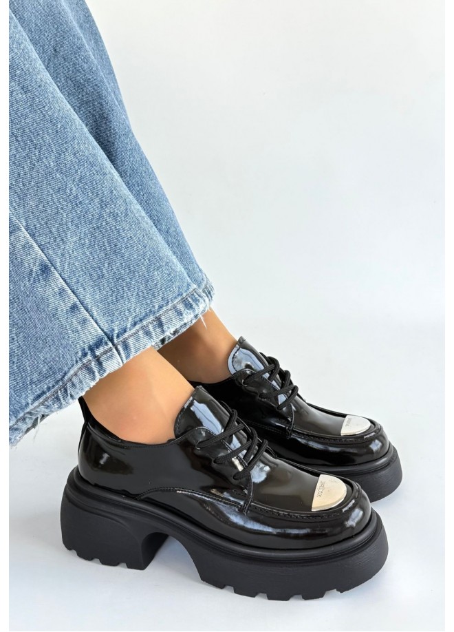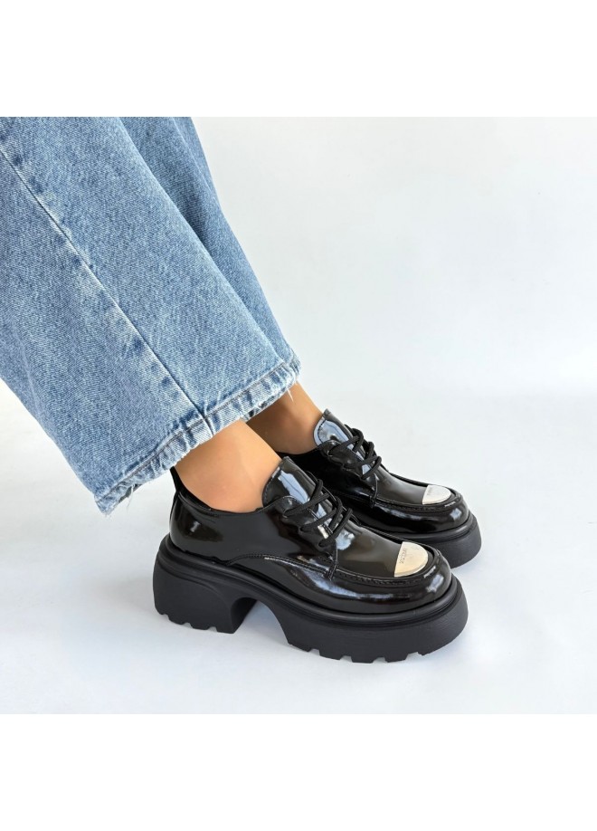 Kiya Siyah Rugan Dolgu Topuk Oxford Ayakkabı