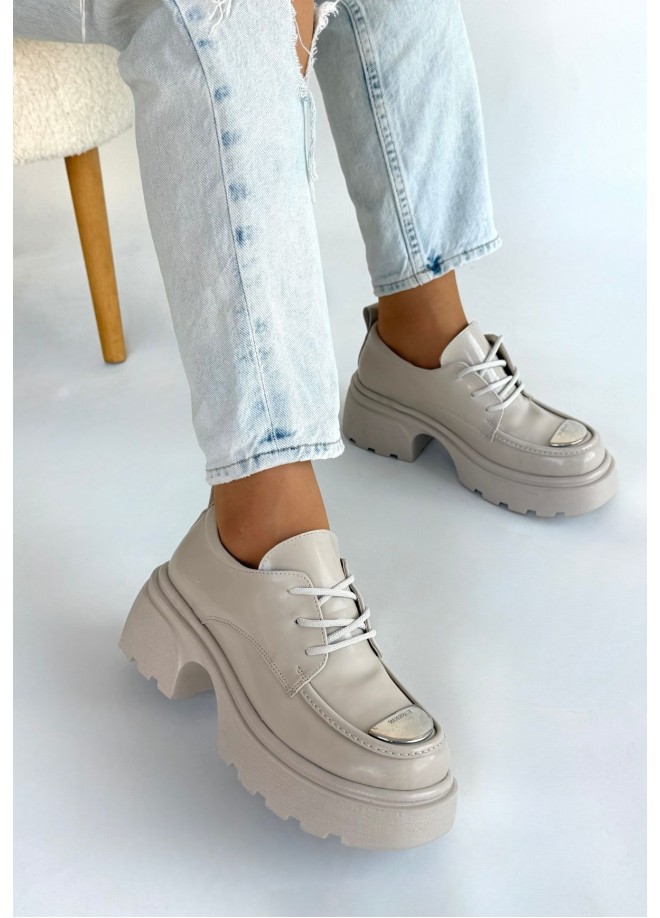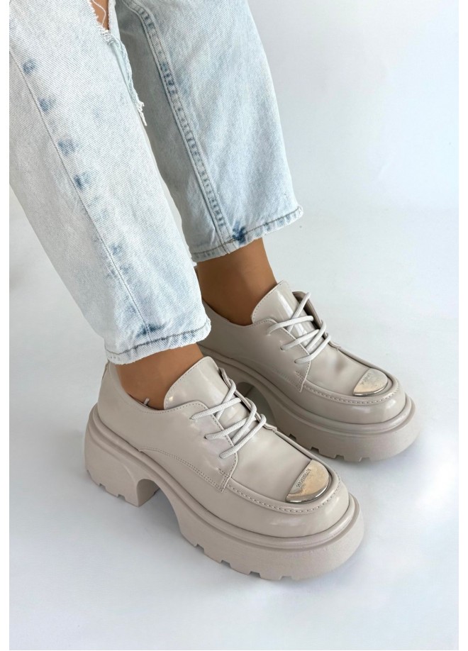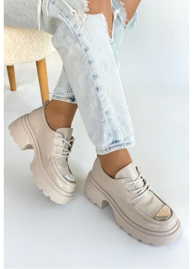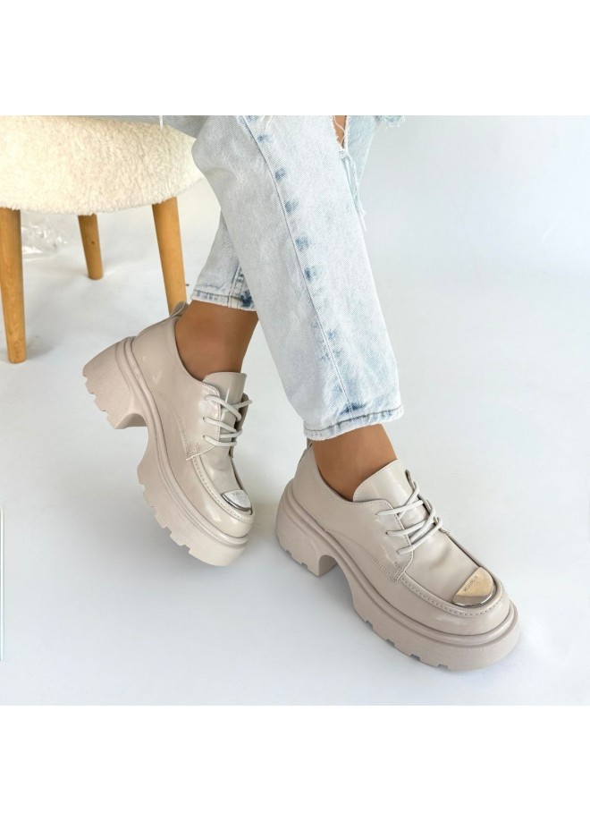 Kiya Bej Rugan Dolgu Topuk Oxford Ayakkabı
