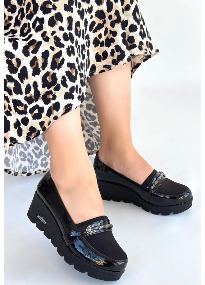Kear Siyah Rugan Dolgu Topuk Ayakkabı