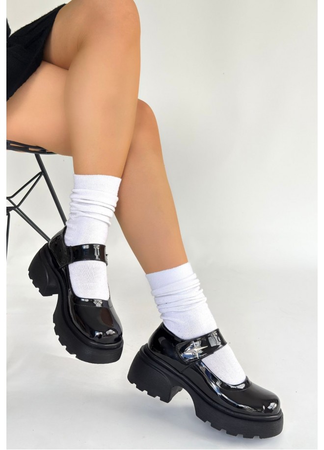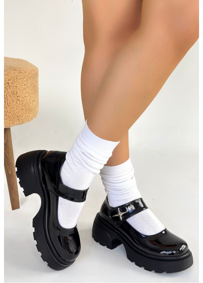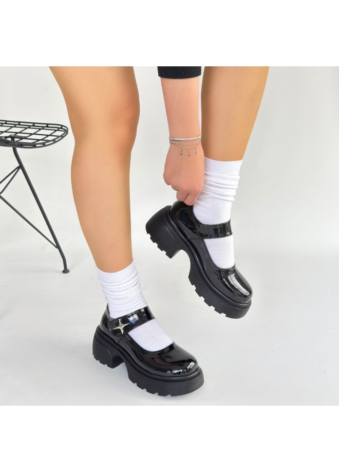Siyat Siyah Rugan Dolgu Topuk Oxford Ayakkabı