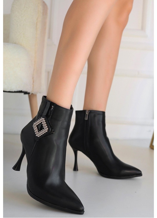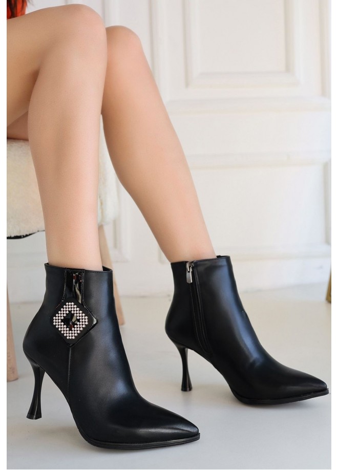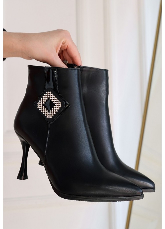 Moose Siyah Cilt Topuklu Bot