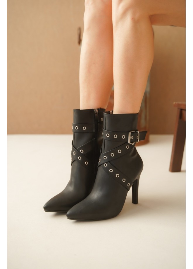 Atye Siyah Cilt Topuklu Bot