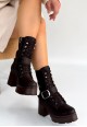 Linma Siyah Nubuk Bağcıklı Topuklu Bot