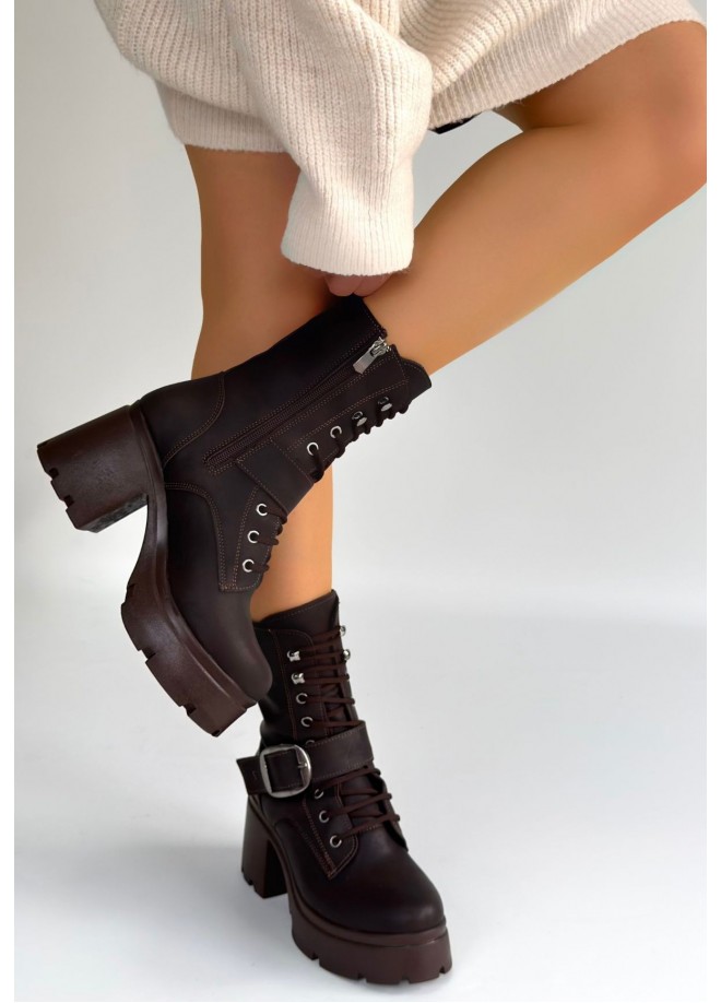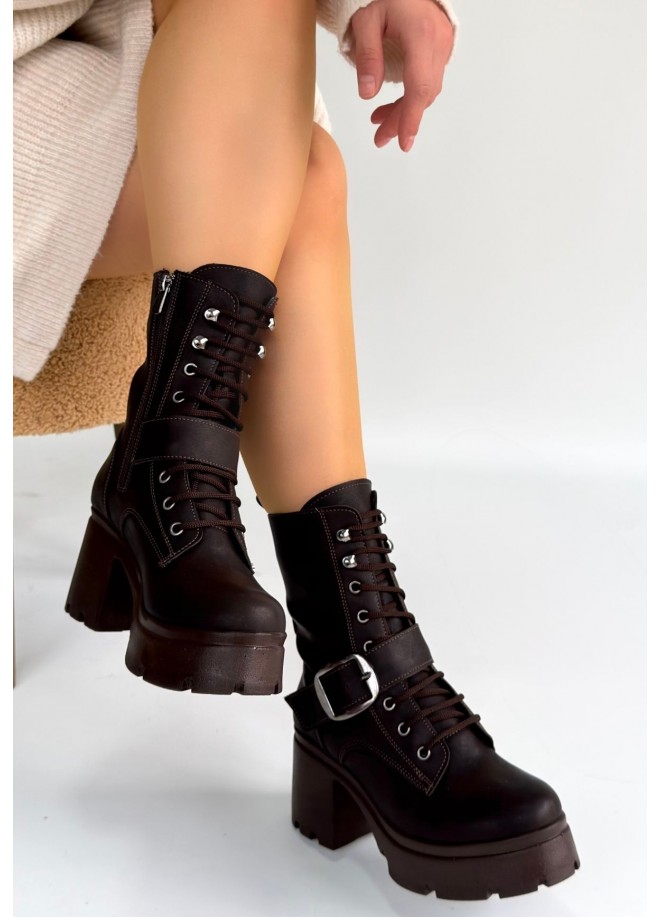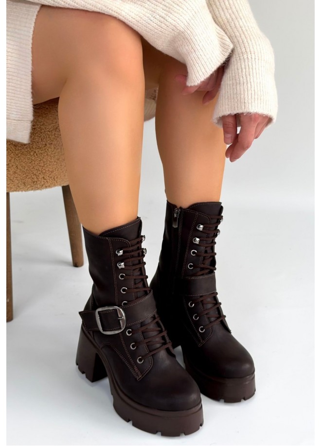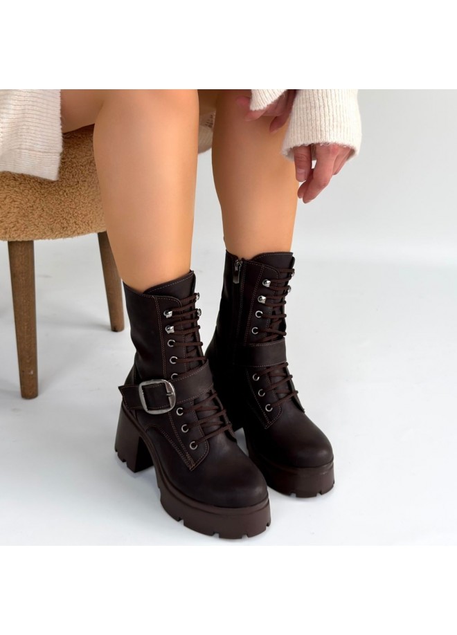 Linma Acı Kahve Cilt Bağcıklı Topuklu Bot