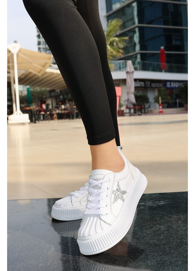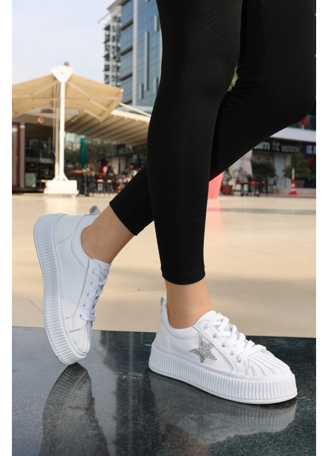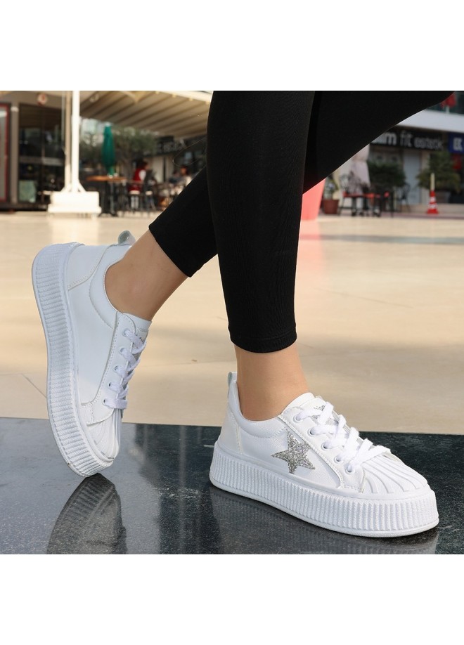 Piata Beyaz Cilt Bağcıklı Spor Ayakkabı