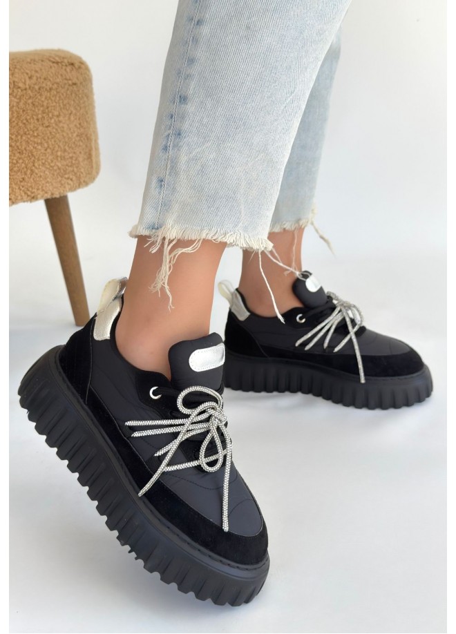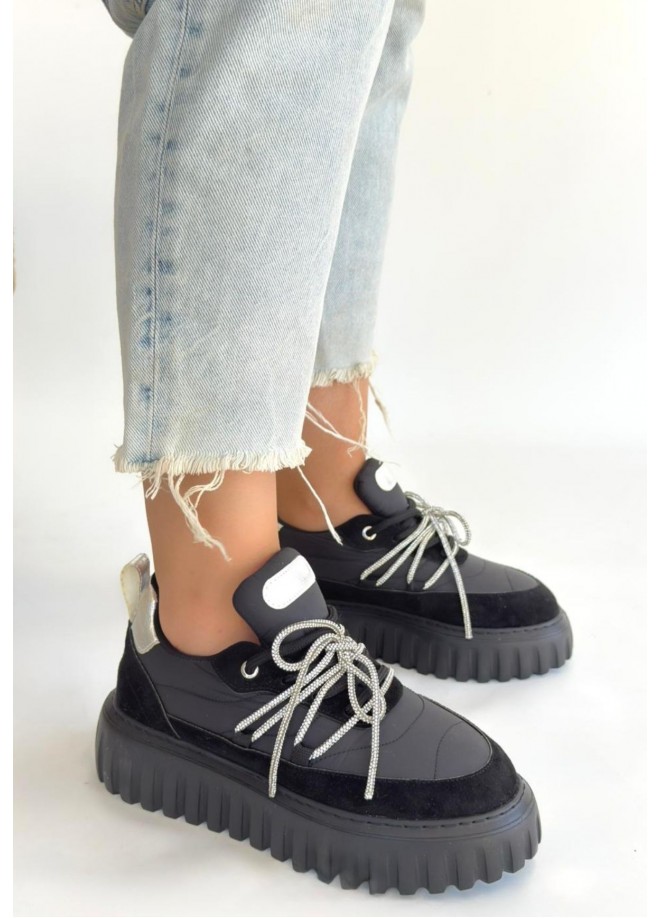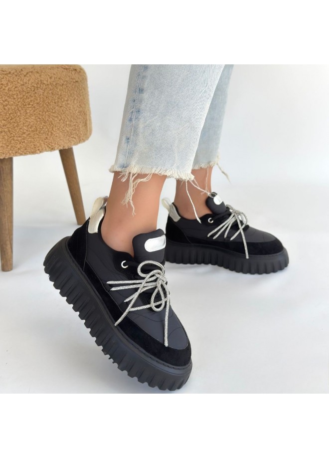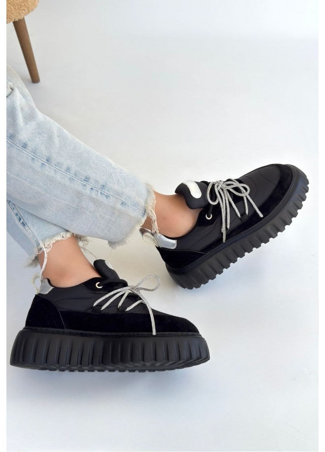 Lemda Siyah Süet Bağcıklı Spor Ayakkabı