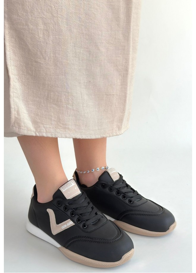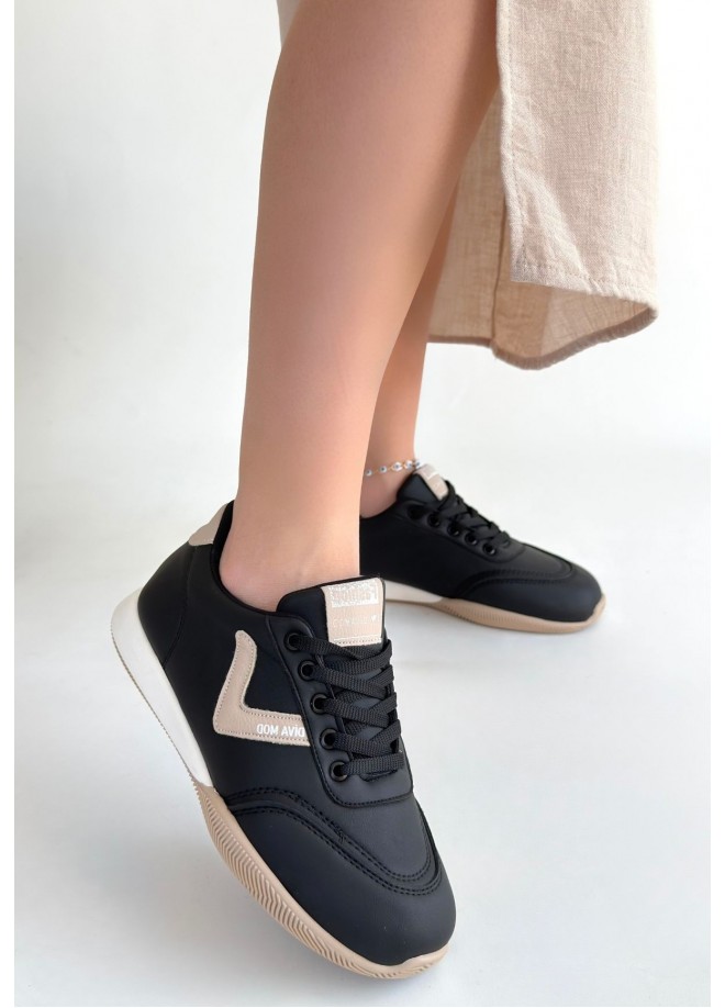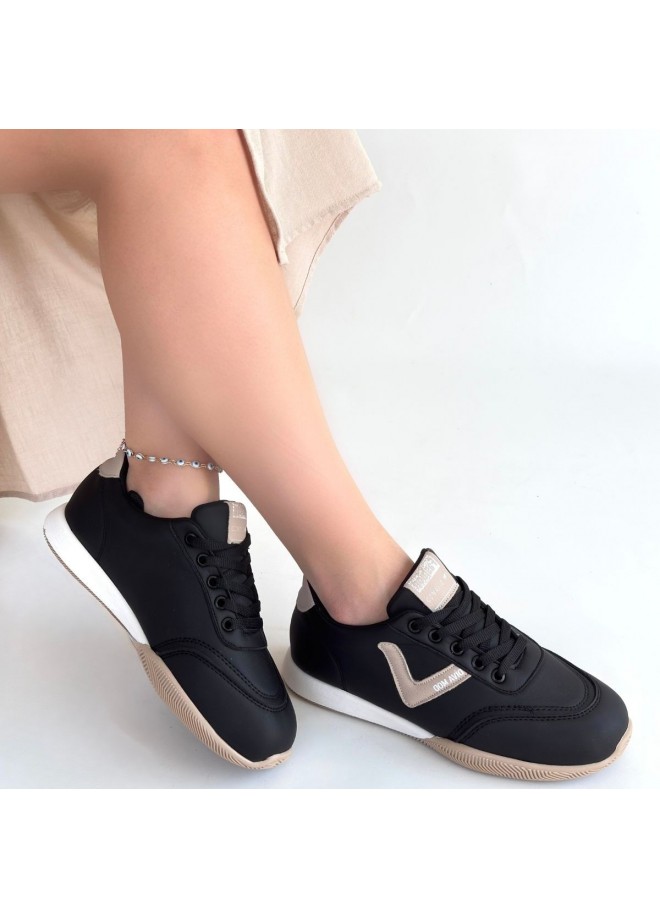 Jowen Siyah Cilt Bej Detaylı Bağcıklı Spor Ayakkabı