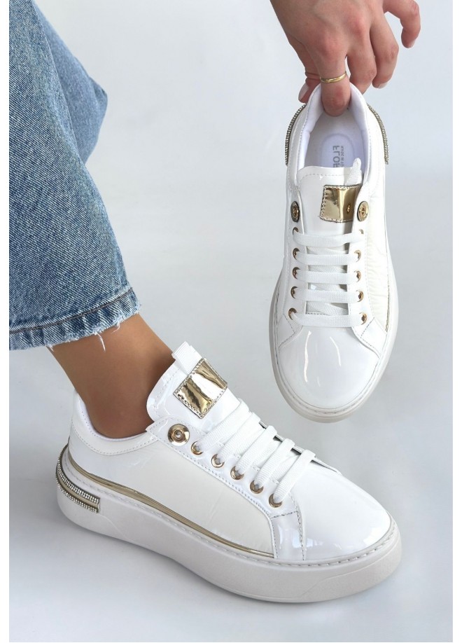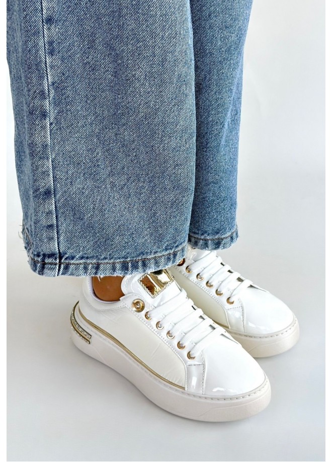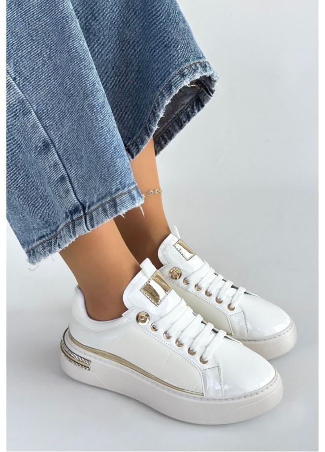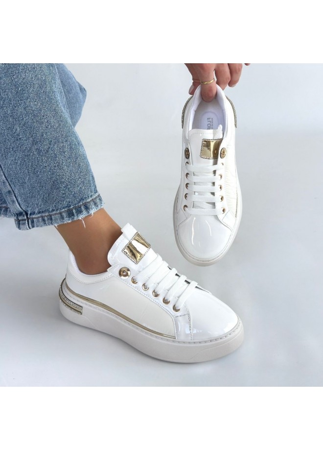 Hley Beyaz Rugan Paraşüt Detaylı Bağcıklı Spor Ayakkabı