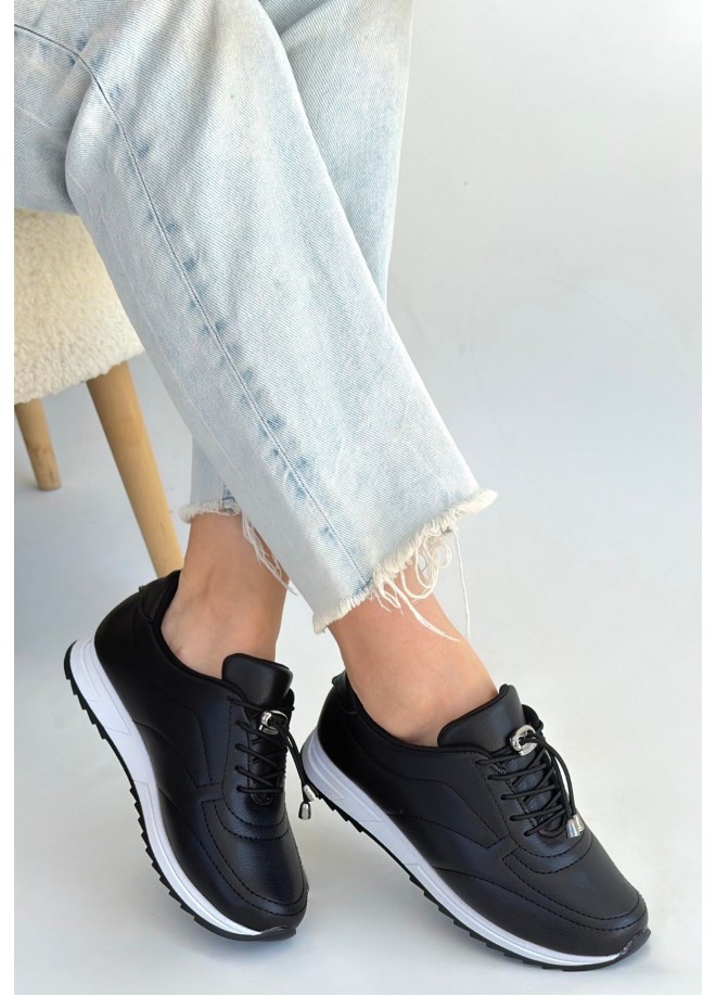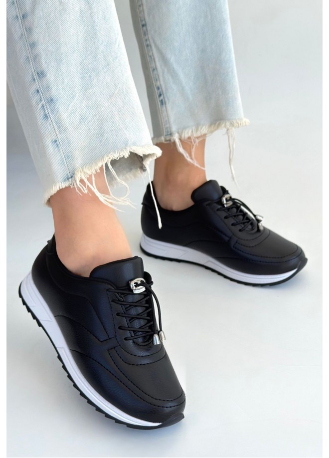Finna Siyah Cilt Bağcıklı Spor Ayakkabı
