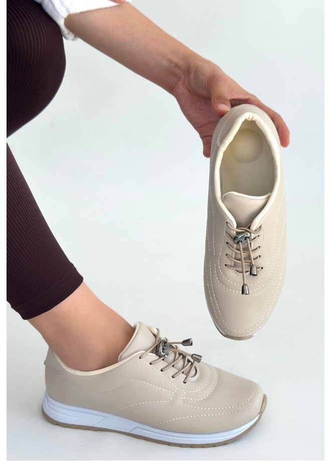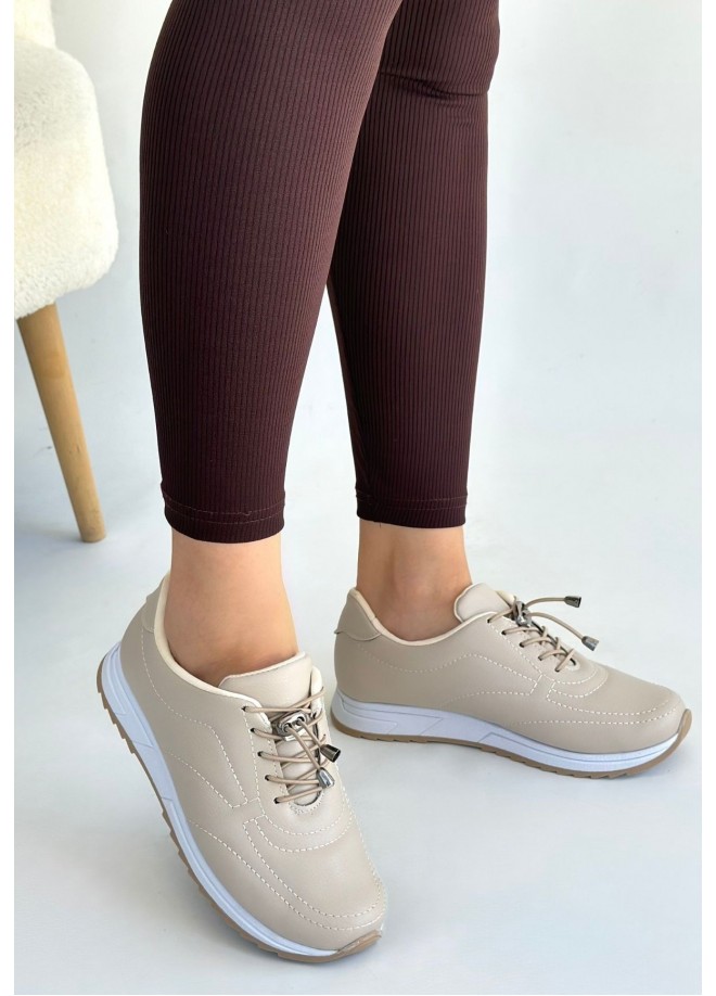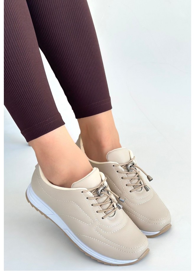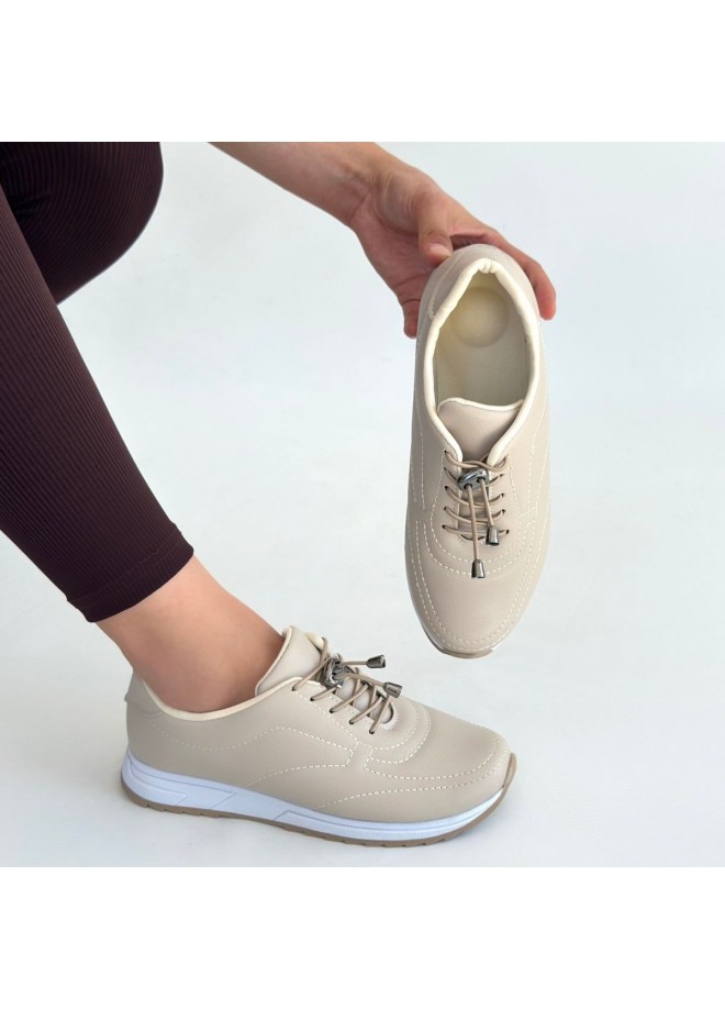 Finna Bej Cilt Bağcıklı Spor Ayakkabı