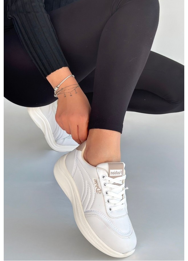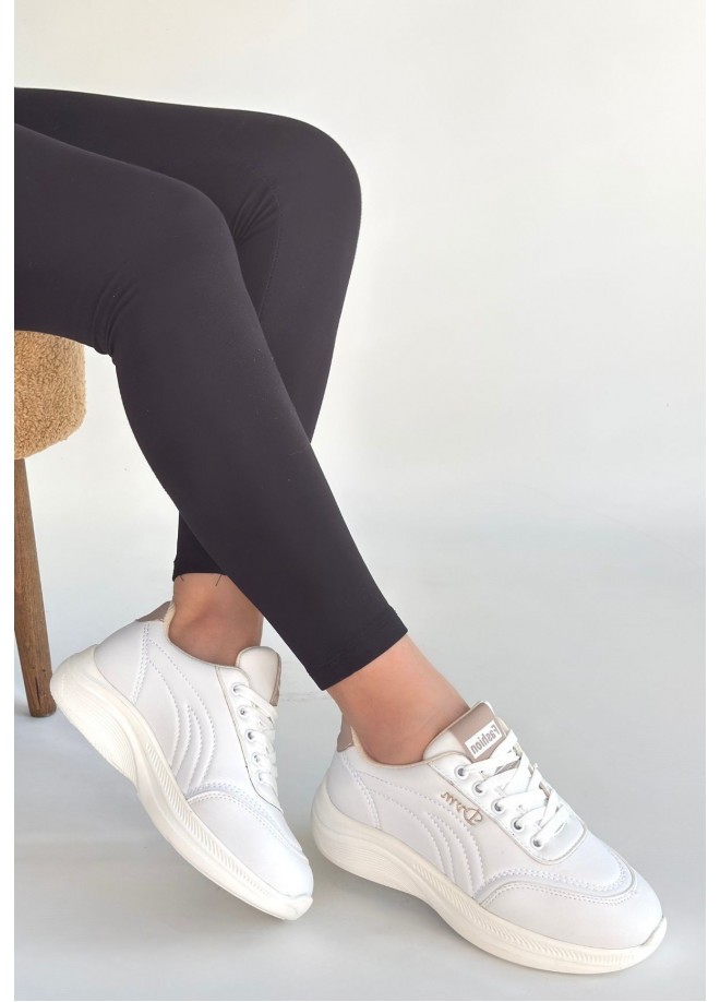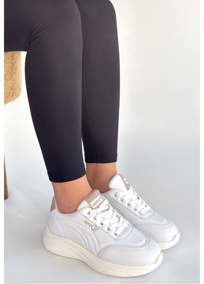 Yejja Beyaz Cilt Bağcıklı Spor Ayakkabı
