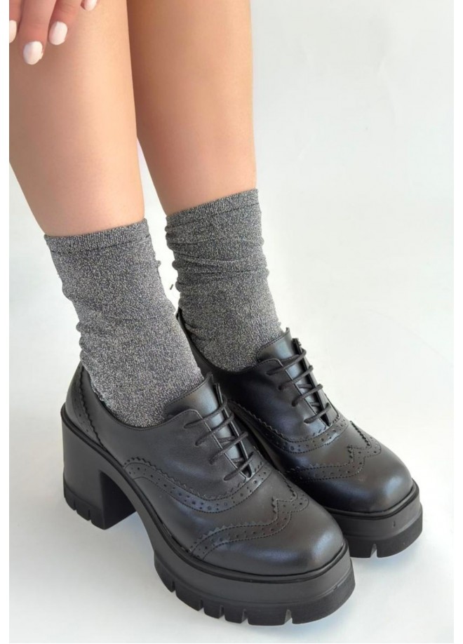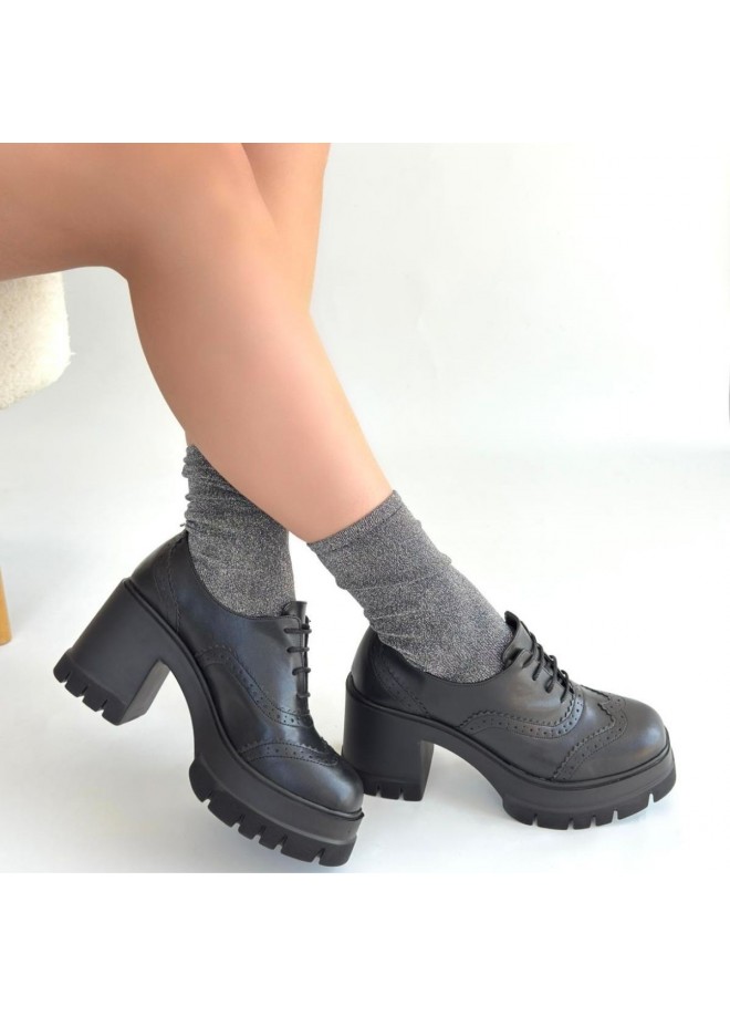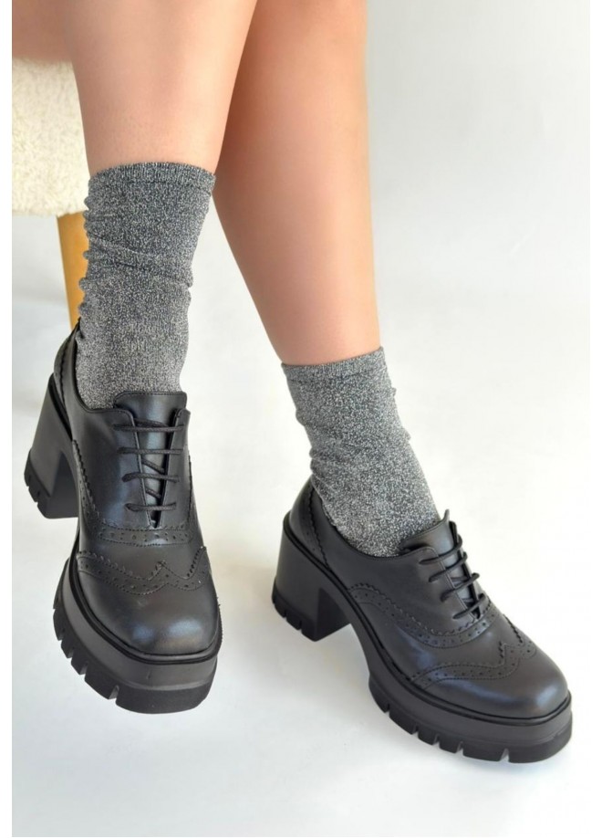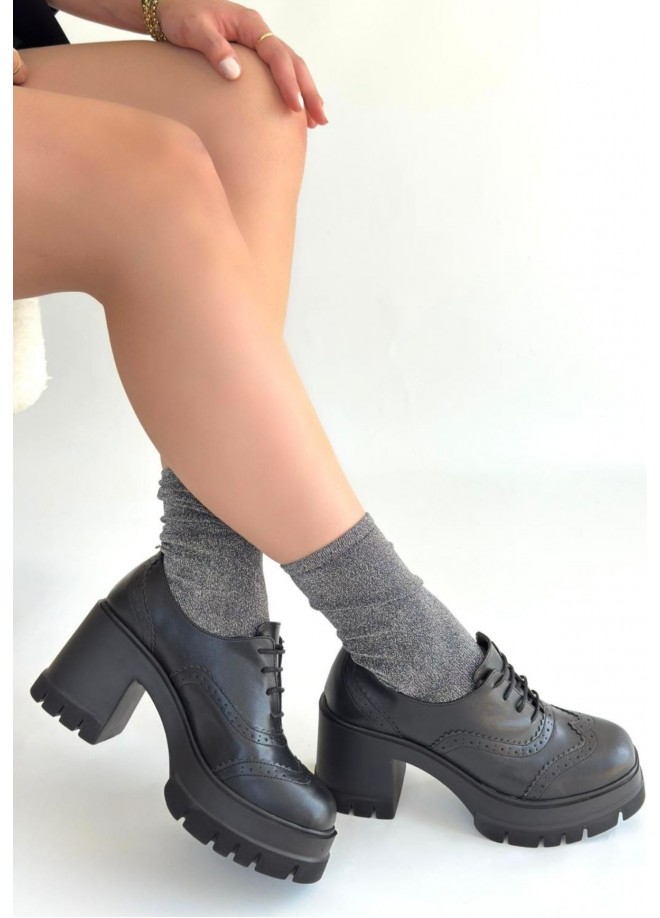 Tiwer Siyah Cilt Dolgu Topuk Ayakkabı