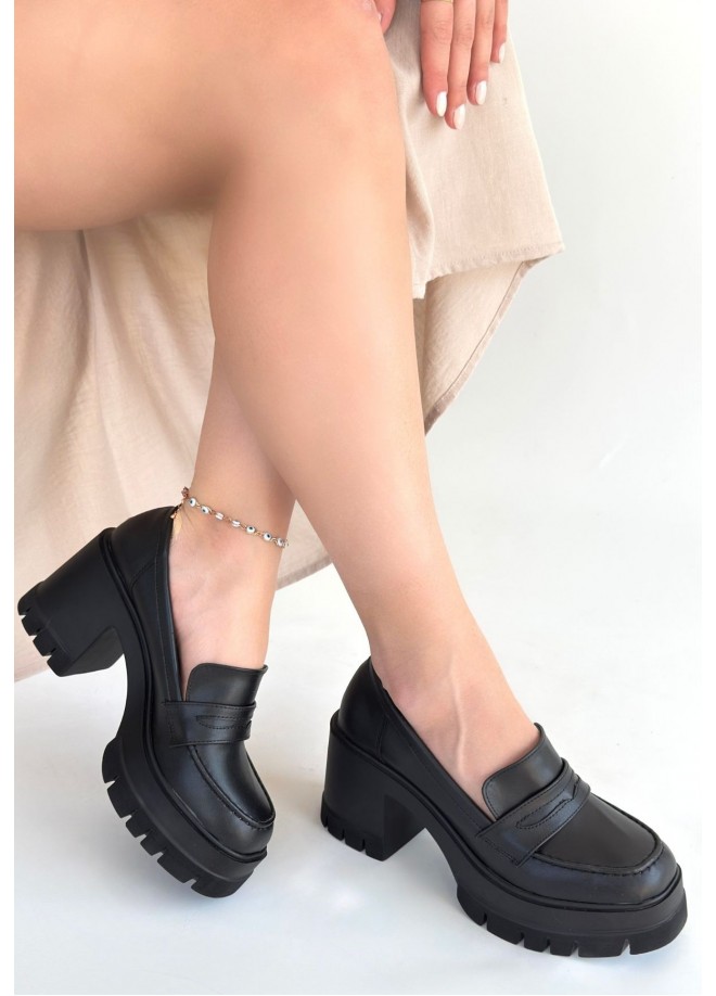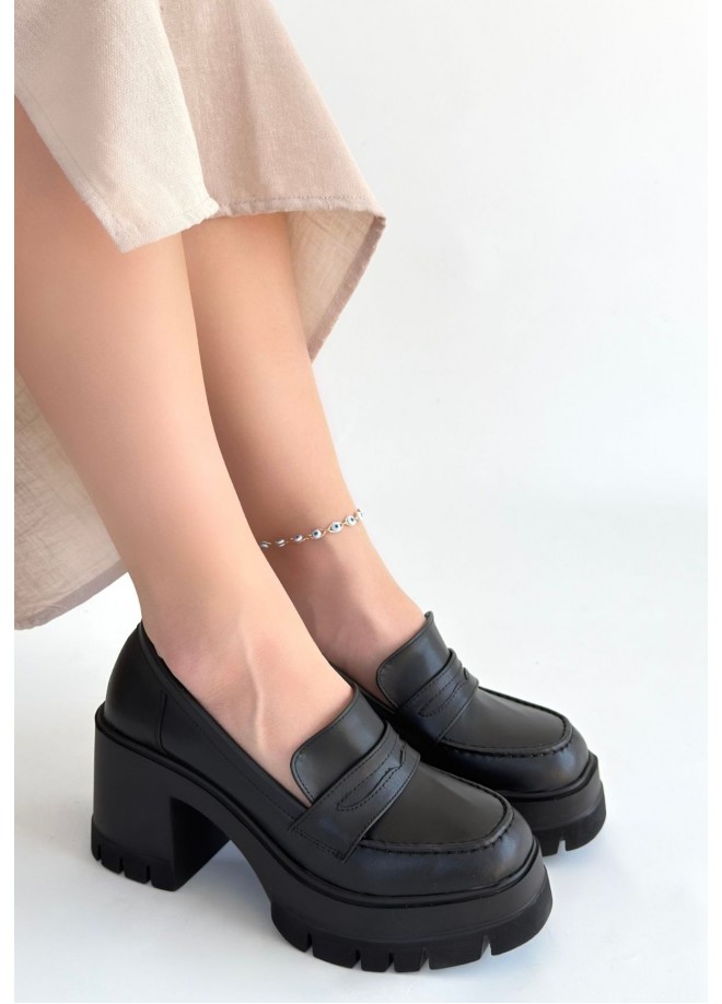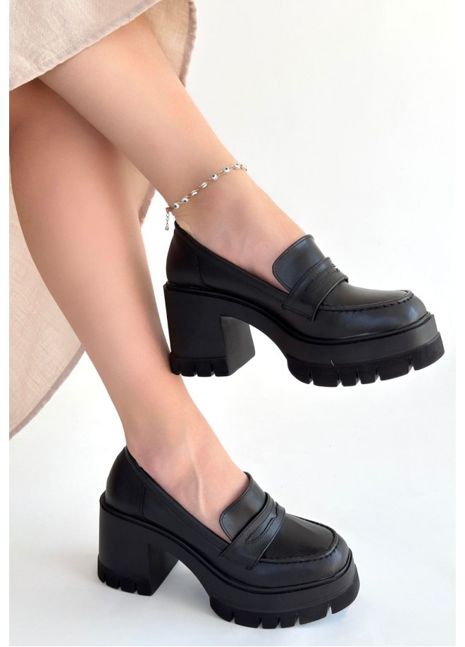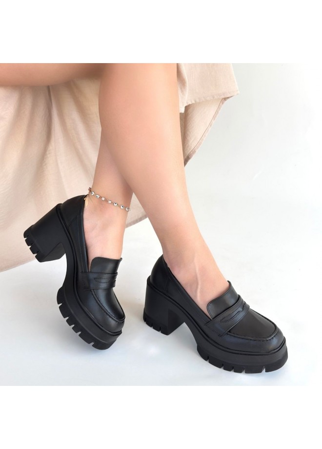 Janes Siyah Cilt Dolgu Topuk Ayakkabı