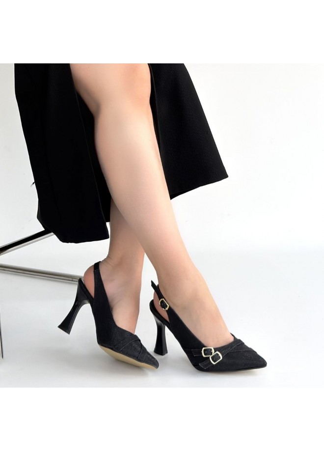 Jedda Siyah Simli Cilt Topuklu Ayakkabı