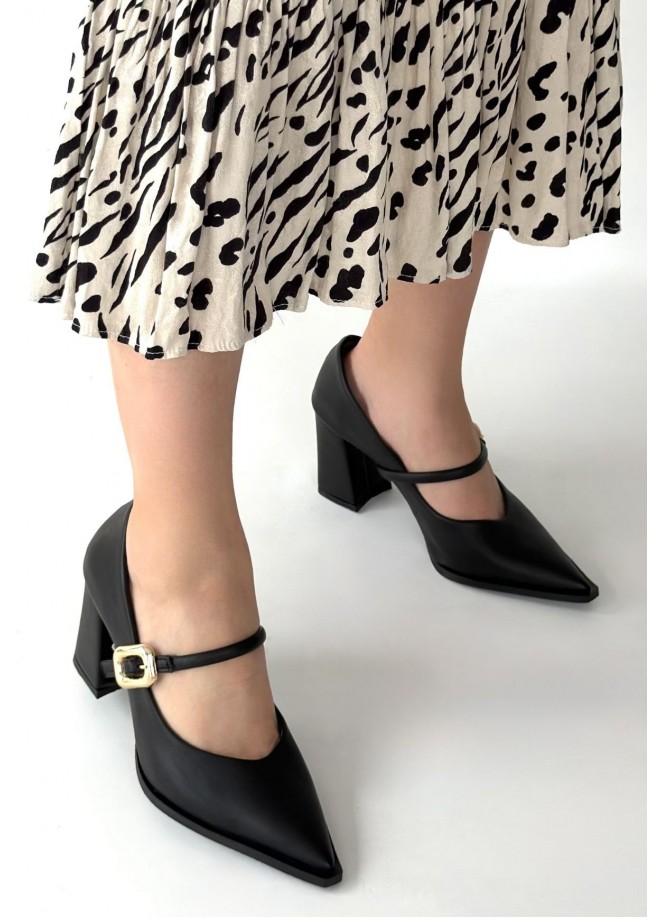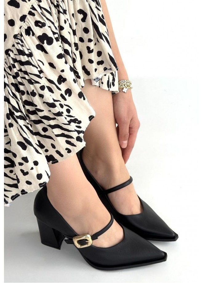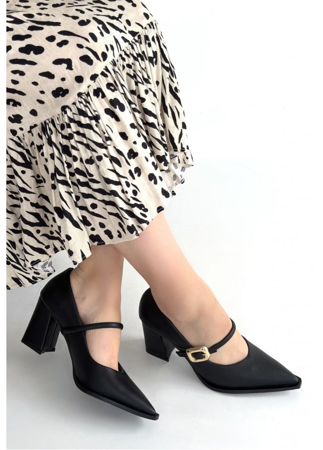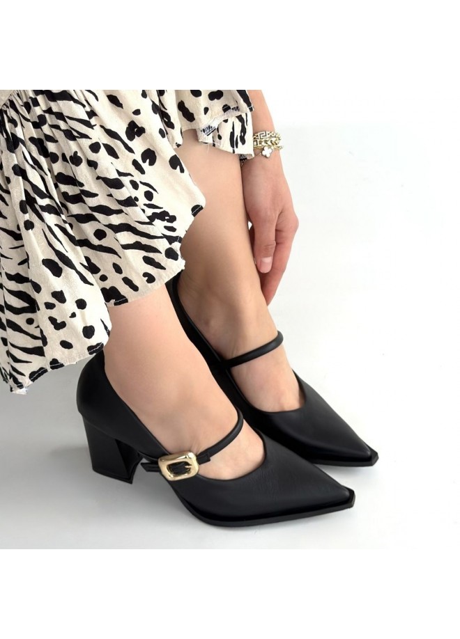Nıvra Siyah Cilt Topuklu Ayakkabı
