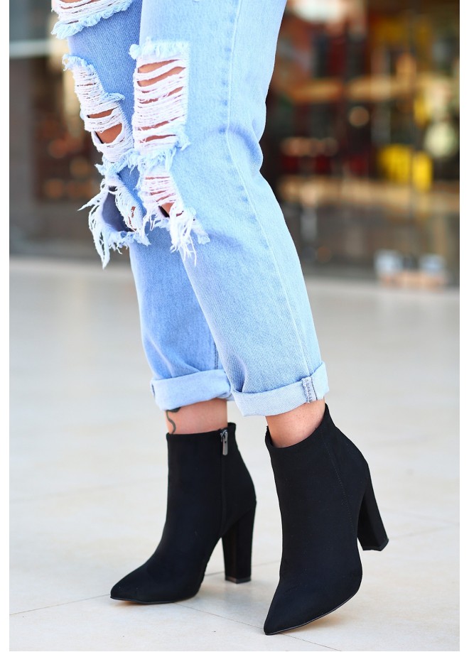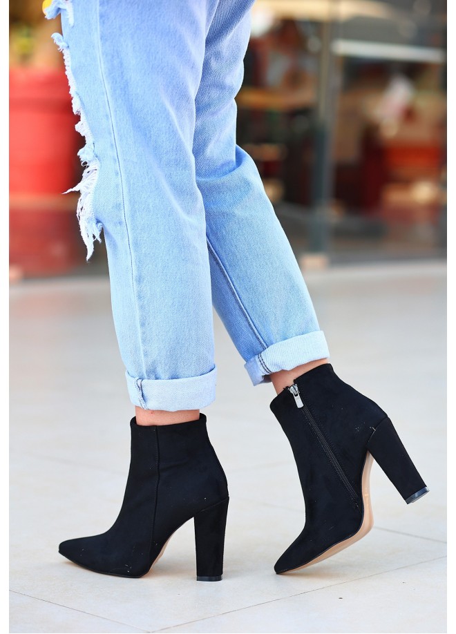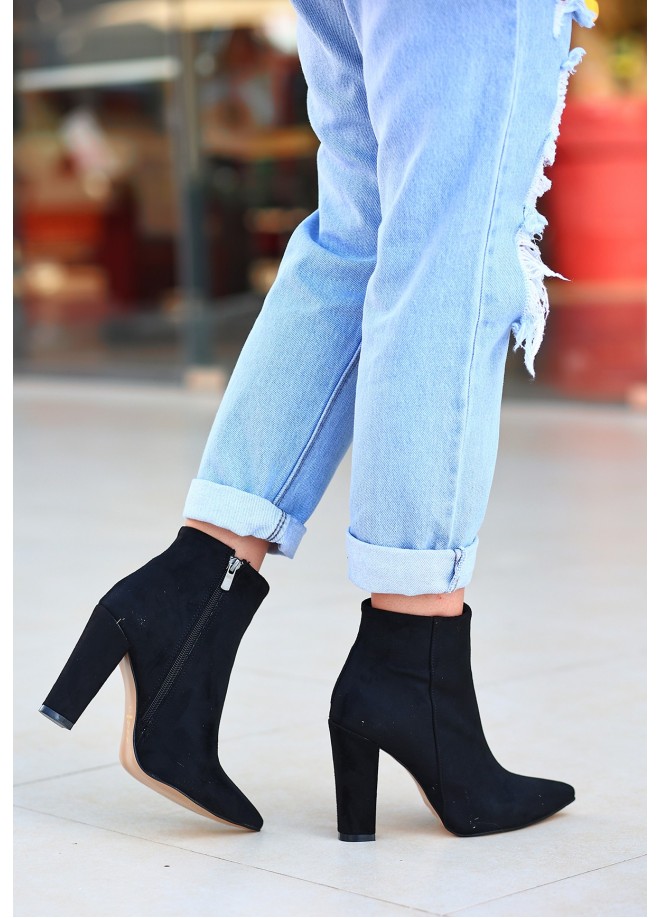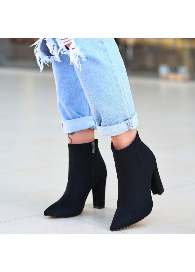 Loora Siyah Süet Topuklu Bot