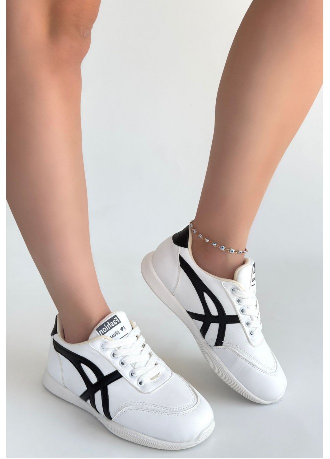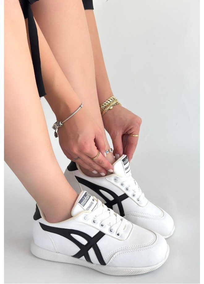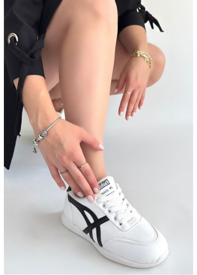 Zlay Beyza Cilt Siyah Detaylı Bağcıklı Spor Ayakkabı