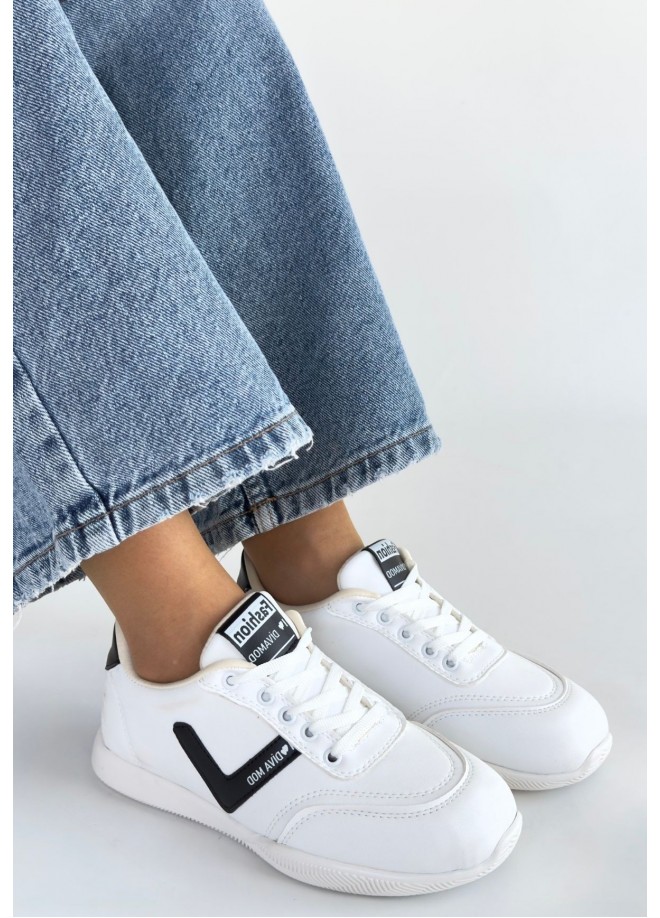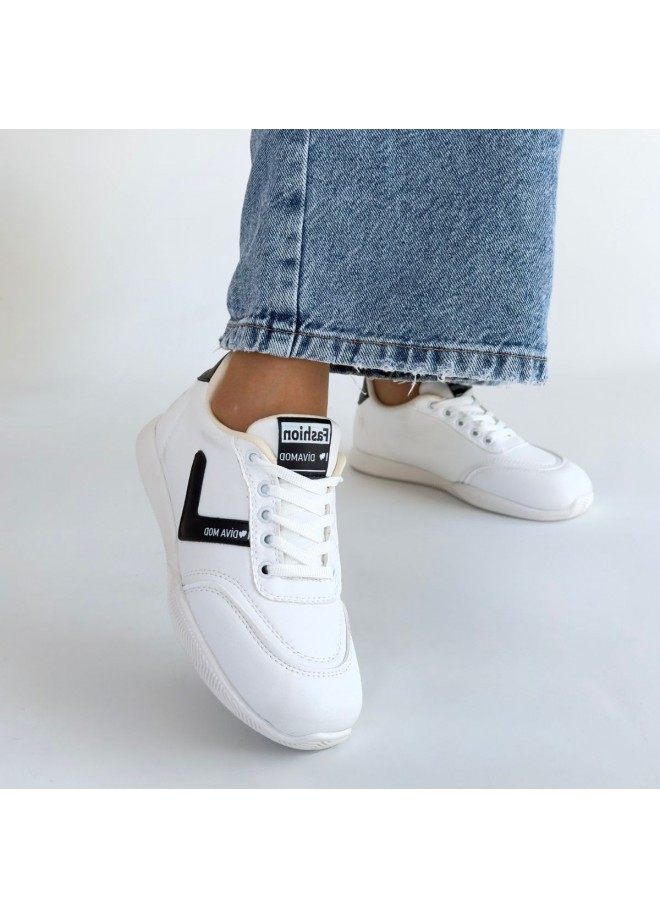 Jowen Beyaz Cilt Siyah Detaylı Bağcıklı Spor Ayakkabı