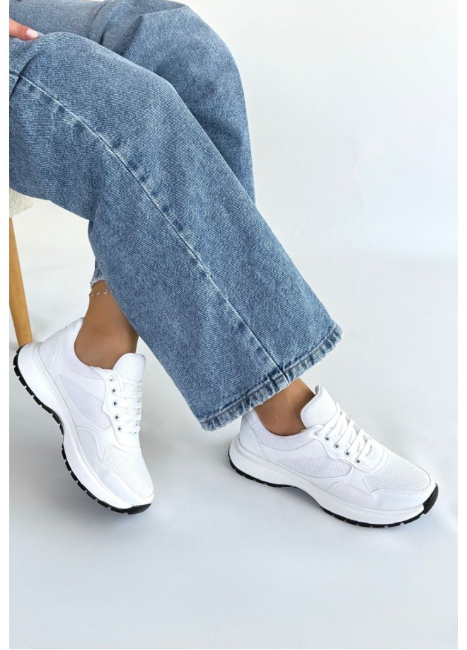 Slar Beyaz Cilt Bağcıklı Spor Ayakkabı