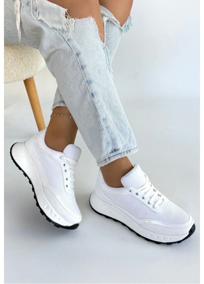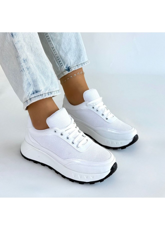 Edva Beyaz Cilt Bağcıklı Spor Ayakkabı