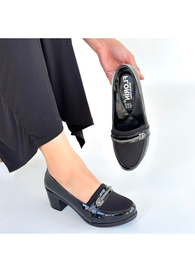 Yoer Siyah Rugan Dolgu Topuk Ayakkabı