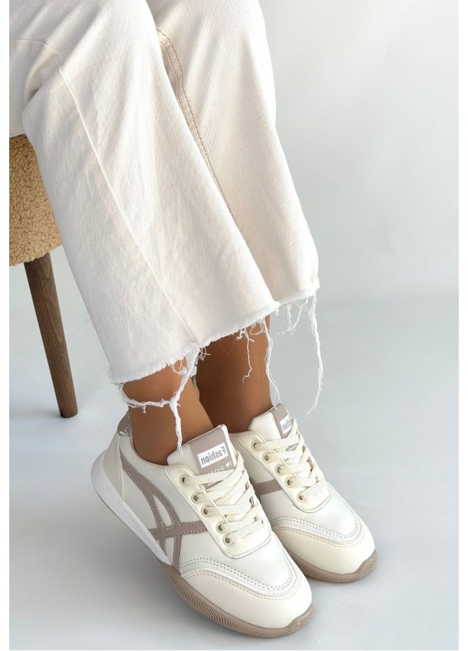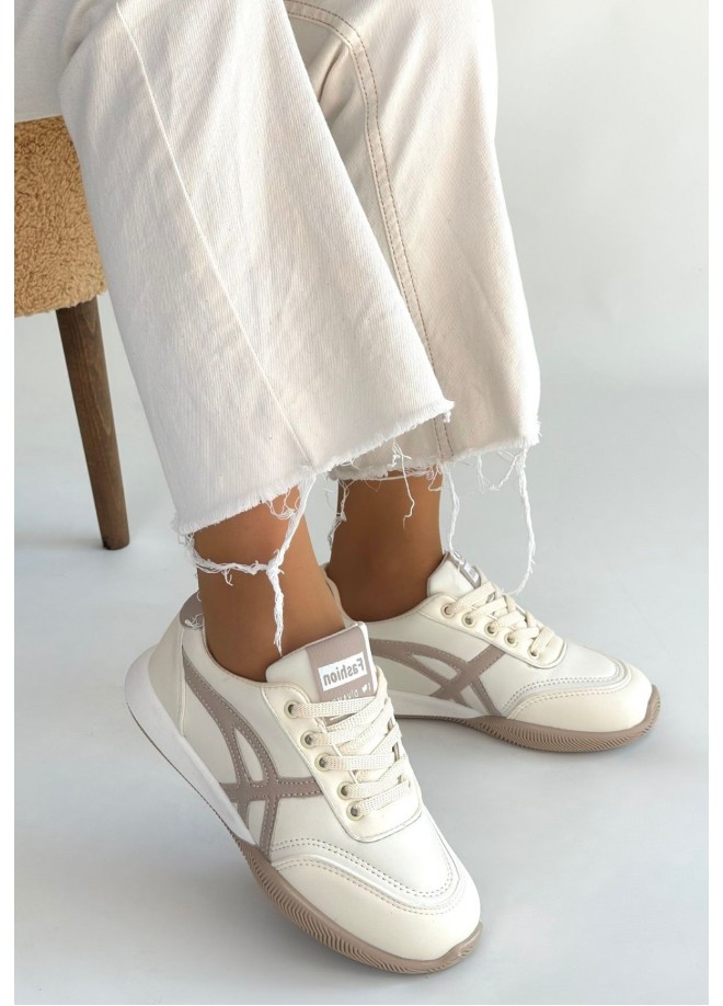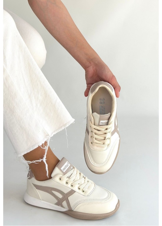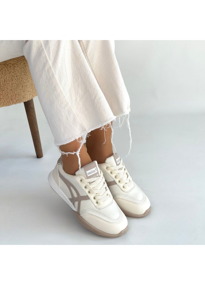 Zlay Bej Cilt Vizon Detaylı Bağcıklı Spor Ayakkabı