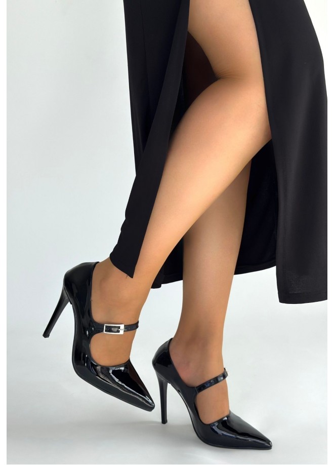 Tiej Siyah Rugan Stiletto Ayakkabı