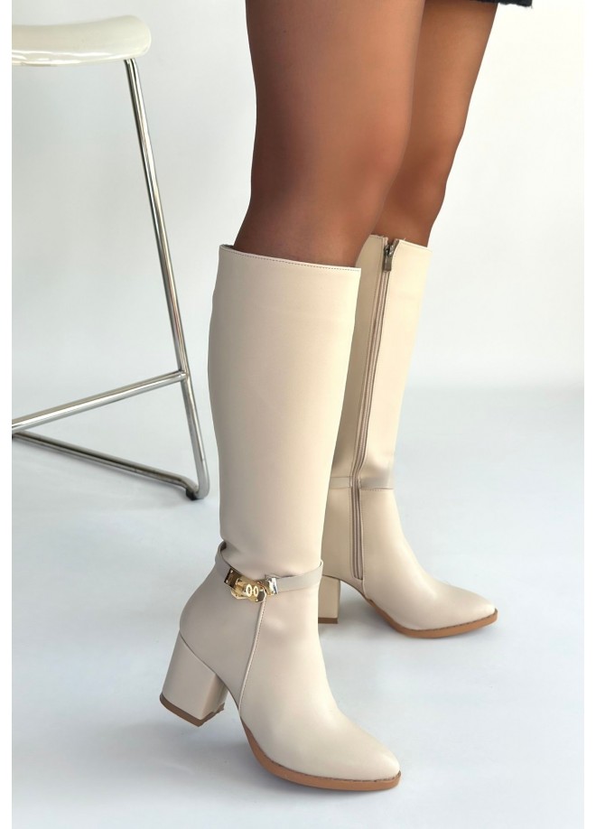 Detay: Topuklu Diz Altı Yandan Fermuarlı Çizme