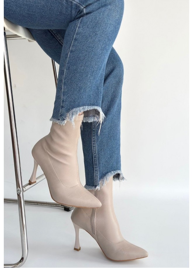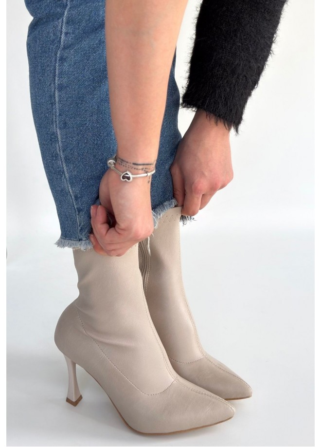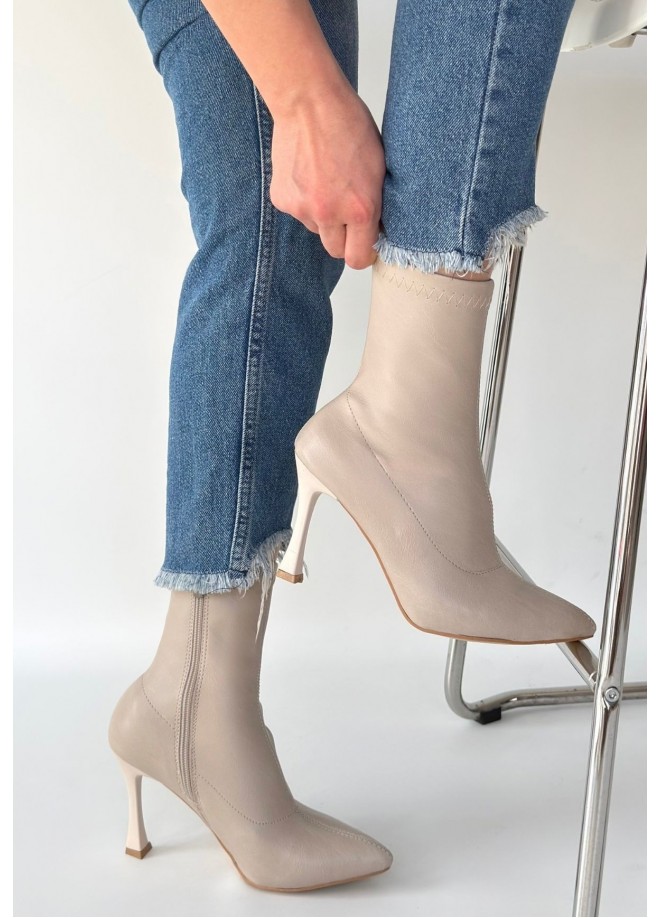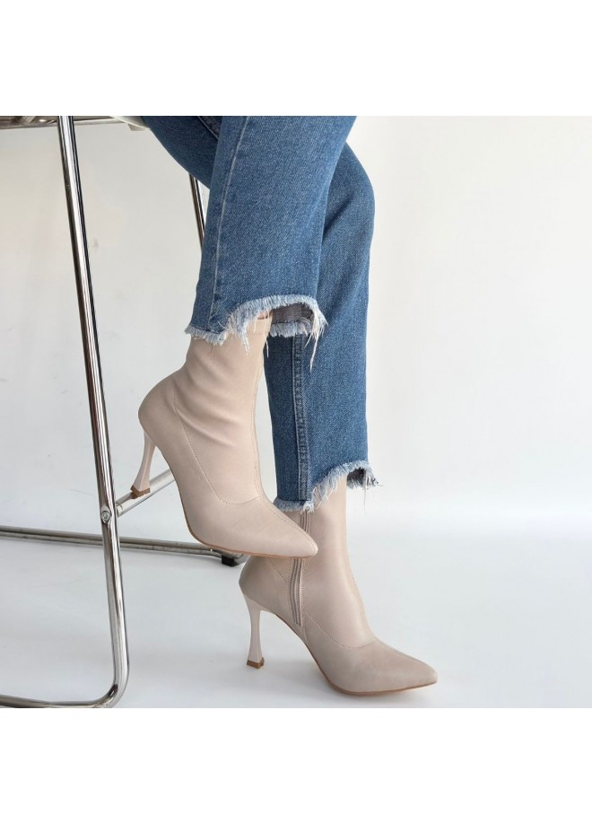 Orjen Bej Cilt Streç Topuklu Bot