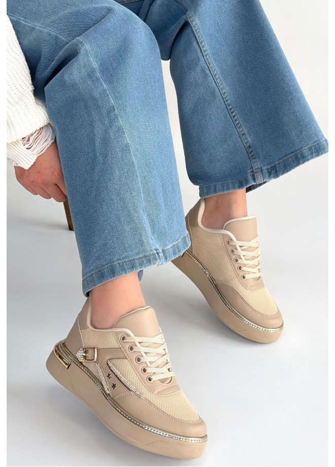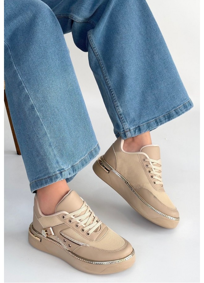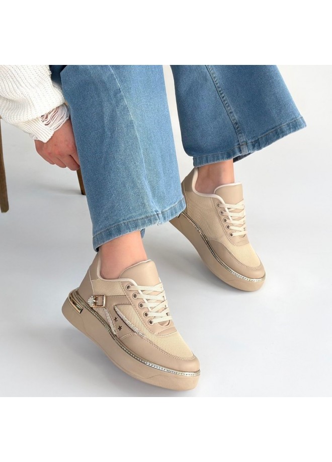 Junda Bej Cilt Bağcıklı Spor Ayakkabı