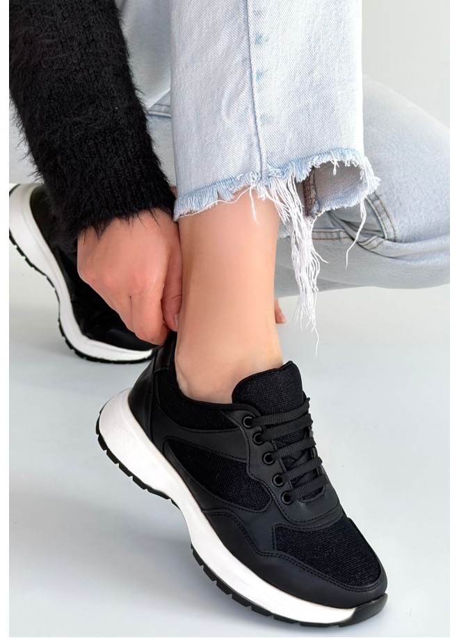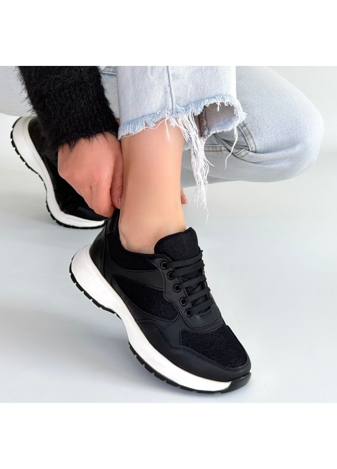 Slar Siyah Cilt Simli Bağcıklı Spor Ayakkabı