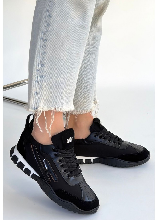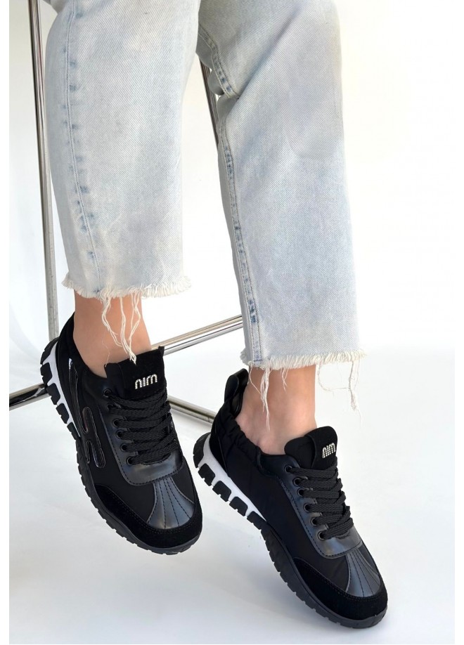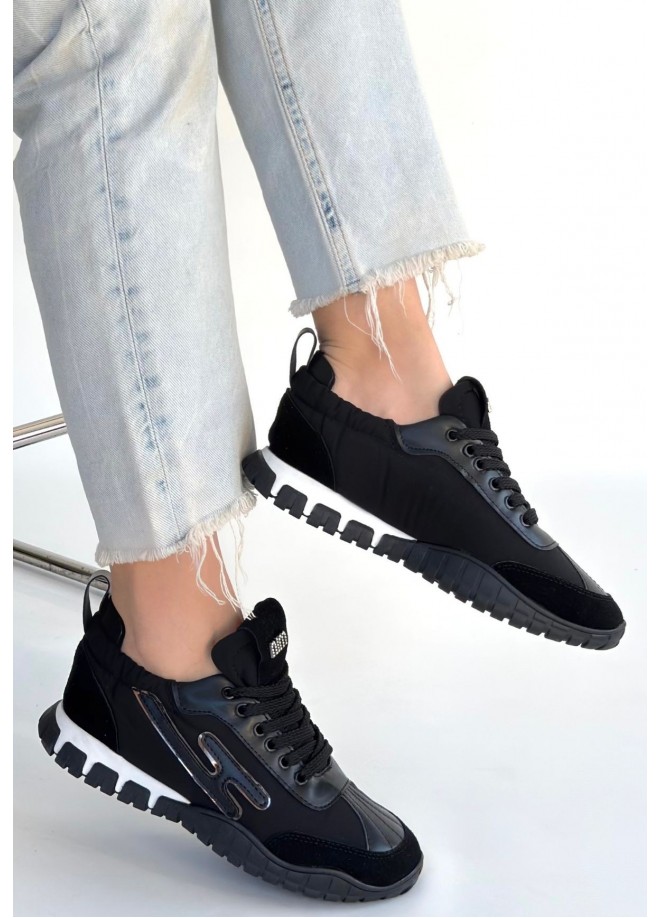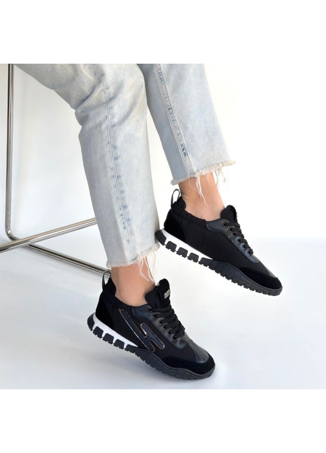 Huer Siyah Nubuk Bağcıklı Spor Ayakkabı