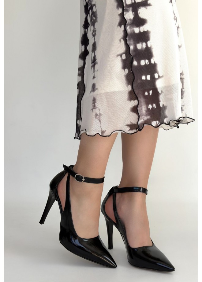 Wenni Siyah Rugan Stiletto Ayakkabı