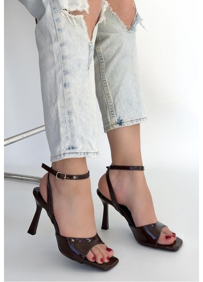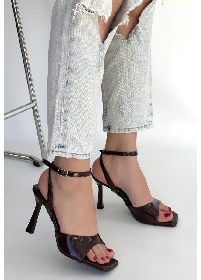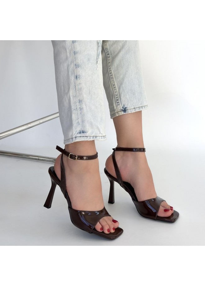 Soha Kahverengi Rugan Topuklu Bilekten Kemerli Ayakkabı