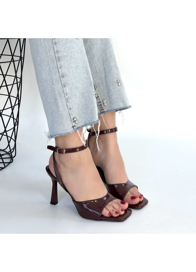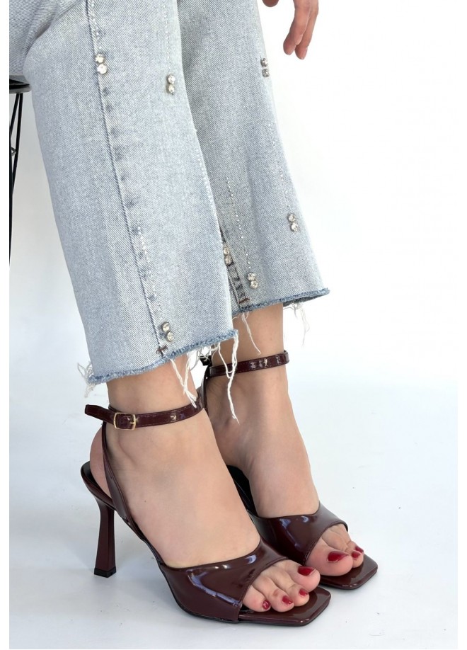 Soha Bordo Rugan Topuklu Bilekten Kemerli Ayakkabı