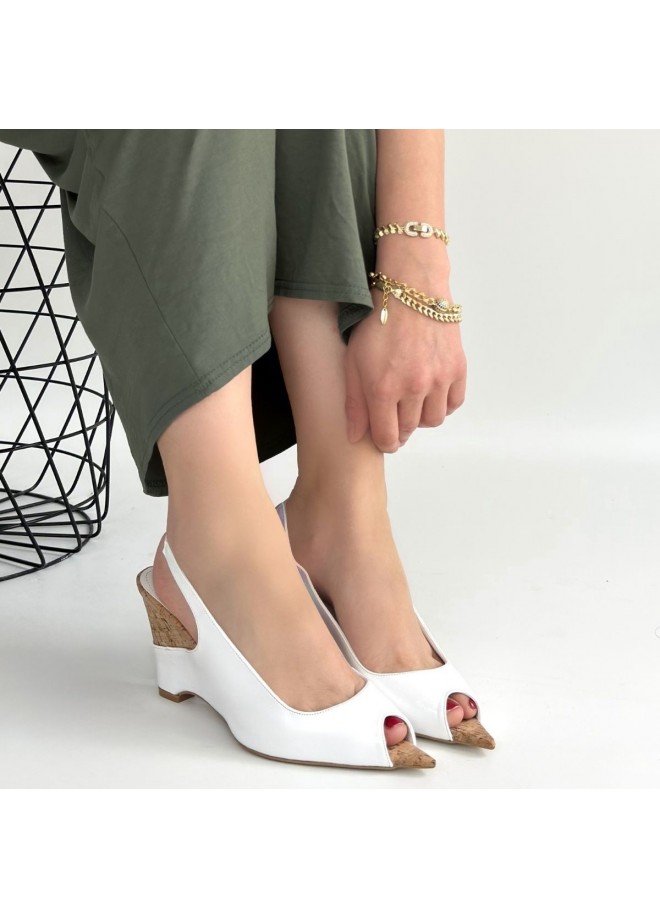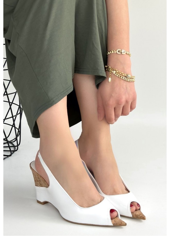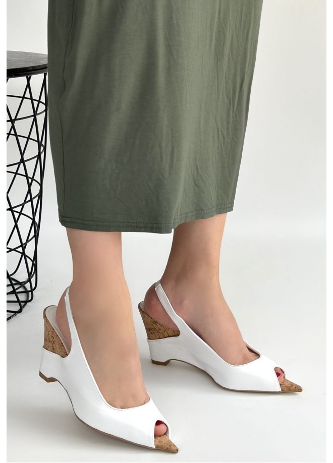 Nemba Beyaz Rugan Dolgu Topuk Ayakkabı